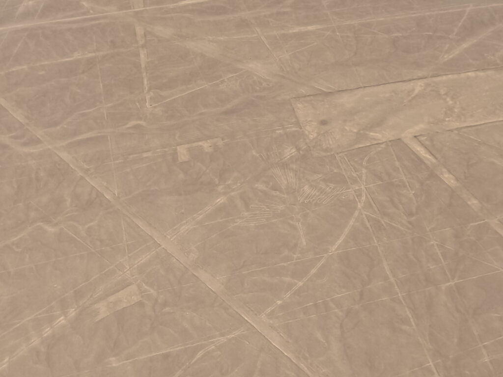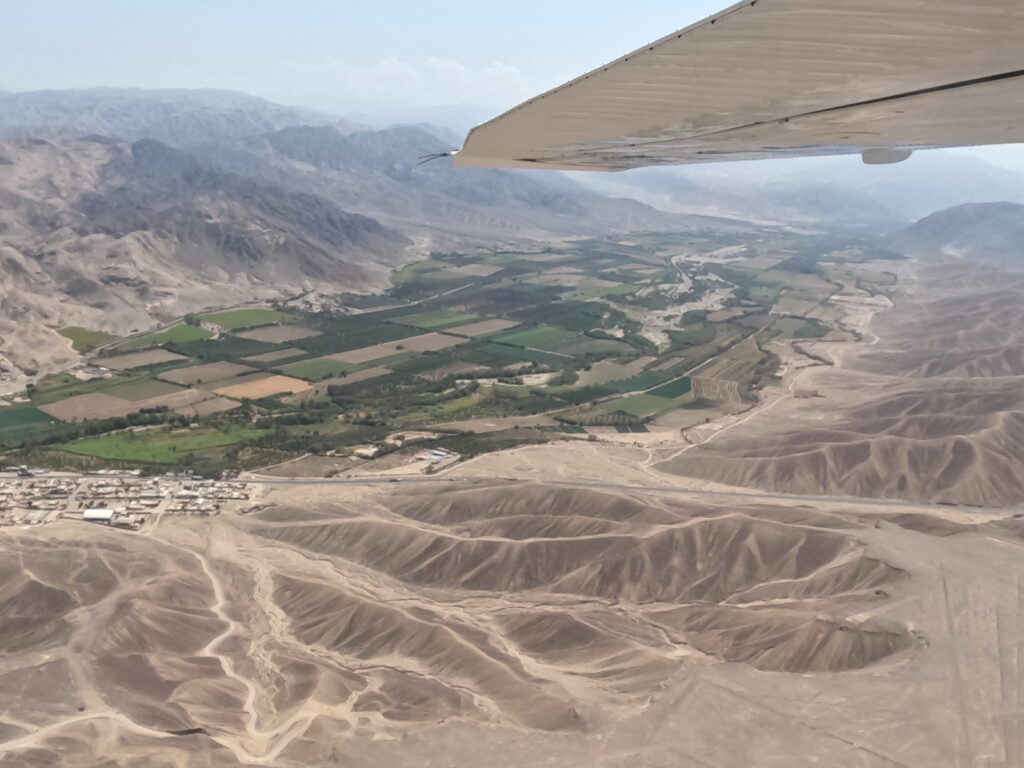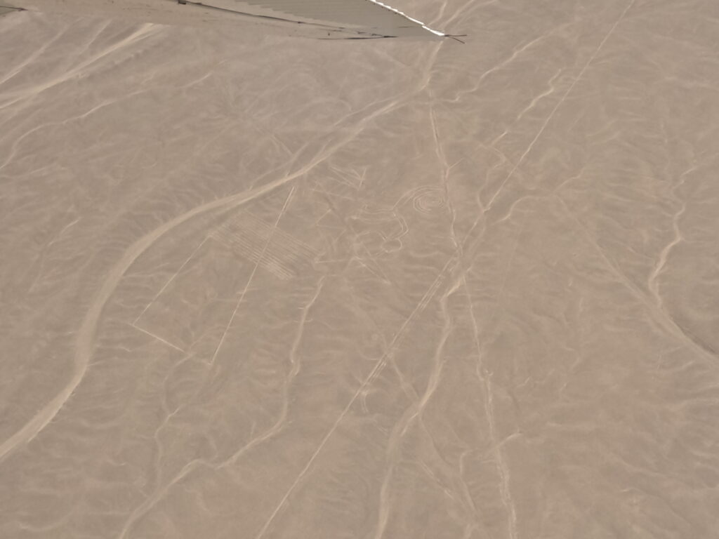 Le lendemain, nous y voilà !! Un chauffeur nous attend à 8h30 pour nous emmener à l’aérodrome. On a pris le vol de 40min (le plus long), où l’avion passe de chaque côté des lignes. On te conseille de ne pas manger le matin car l’avion va de gauche à droite et ça tourne pas mal ! Pas de panique, chacun à devant lui un petit sac “au cas où”. Le pilote est accompagné d’un co-pilote qui nous montre les lignes, ils faisaient même l’effort de parler français ! Honnêtement c’est vraiment chouette de survoler ce désert de terre ! On s’attendait à ce que les lignes soient plus grandes mais nous n’avons pas été décus pour autant.